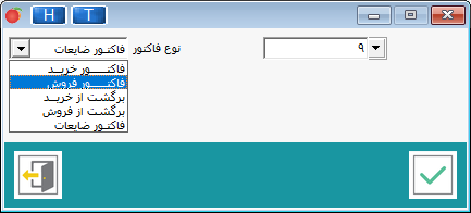 • شماره فاکتور و نوع فاکتور را انتخاب کرده و گزینه تایید را بزنید.