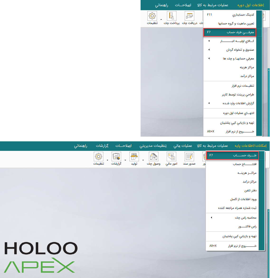 اطلاعات اول دوره / معرفی طرف‌حساب