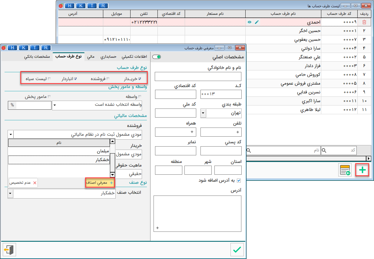 برای انجام انواع مراودات، طرف‌حساب‌ها که می‌توانند حقیقی و یا حقوقی باشند را معرفی نمایید.