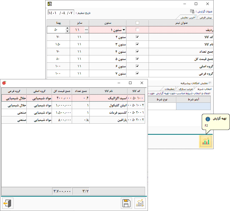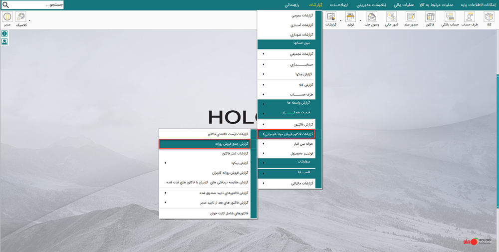 گزارشات / گزارشات فاکتور فروش مواد شیمیایی / گزارش جمع فروش روزانه