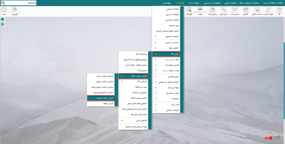 مسیر دسترسی به گزارش کالا – گزارش عملکرد گروهها